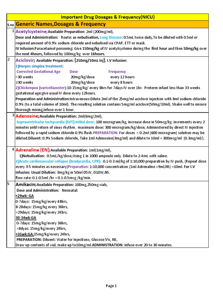 Drug Doses Frequency Nicu 12 May Pdf Intravenous Therapy Saline Medicine